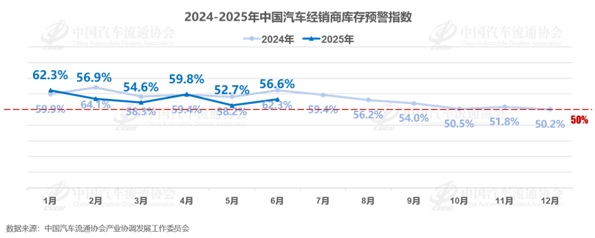2025年6月中国汽车经销商库存预警指数为56.6%